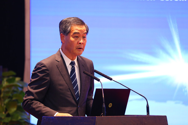 全國政協(xié)副主席、中國社會科學院“一帶一路”國際智庫專家委員會名譽主席梁振英致辭。本網(wǎng)記者 張哲 攝