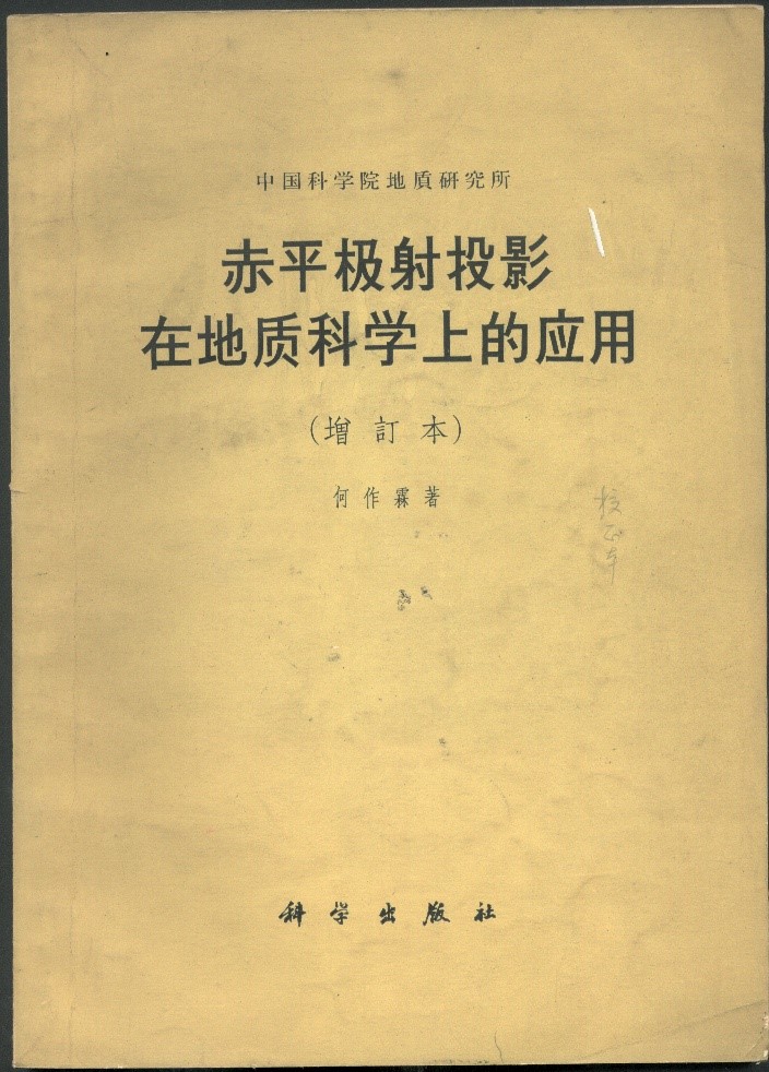 “極射赤平投影”不僅是研究巖組學的重要工具,而且也是地質(zhì)構(gòu)造研究方面的方法典范,在地質(zhì)學上廣泛應用。何作霖是我國第一個對該方法在地質(zhì)科學上應用做綜合闡述者。他集多年的理論研究、科研實踐及各國零散資料撰寫出版了《赤平極射投影在地質(zhì)科學中的應用》(科學出版社,1958)一書,深受巖礦工作者喜歡,后又多次再版。這是世界上第一部這方面的專著,也是中國構(gòu)造地質(zhì)學和巖石礦物學工作者長期必讀的重要工具書。