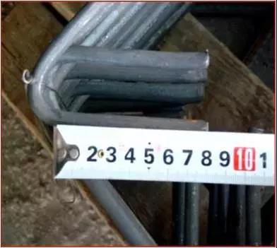 鋼筋加工:I級鋼筋末端需做180°彎鉤,彎曲直徑D取鋼筋直徑d的5倍,平直部分長度取鋼筋直徑d的5倍;箍筋彎鉤135°、平直部分長度取10 d。鋼筋定位鋼筋端頭應切齊、磨去飛邊毛刺,端頭刷防銹漆。