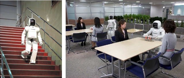 種服務(wù)機(jī)器人很多,比較有代表性的是日本的新一代仿真機(jī)器人,看看它現(xiàn)在都能干什么。這個機(jī)器人上邊是有眼睛的,還有各種各樣的傳感器。它現(xiàn)在已經(jīng)可以跑得很快,每小時跑九公里。它可以聽得懂三個人同時發(fā)的命令,能簡單對話。這個手已經(jīng)很靈巧了,能擰杯子。它可以主動繞開對面走過來的人,有的時候靠視覺,有的時候靠身上其他東西。能踢球,做手語。我們希望這樣的機(jī)器人能早點(diǎn)進(jìn)入我們的生活,但是有兩個問題沒解決,一個是電源,充滿電只能工作半個小時,再一個,智能還差的很多。
