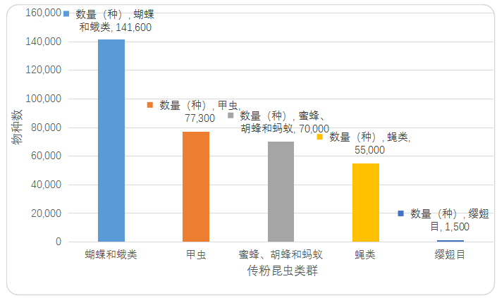 圖1. 主要昆蟲類群中傳粉昆蟲種類估計(jì) (Wardhaugh, 2015)
