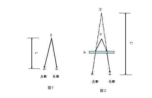 圖1,是觀眾觀察像素S,而體現(xiàn)景深距離L。